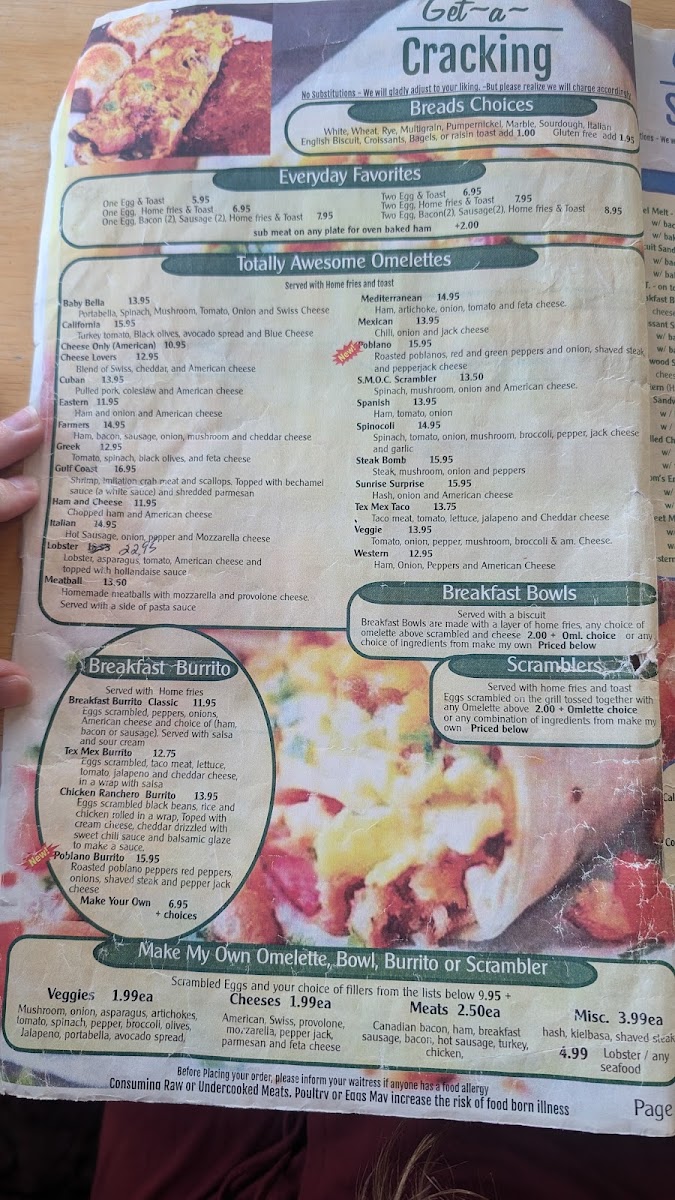 Many dishes are designed to be enjoyed during breakfast or brunch hours, highlighting wholesome ingredients and generous portions. The varied omelettes and burgers provide comfort and familiarity, fitting well with the approachable, friendly atmosphere where tables are close-knit and energy is lively.